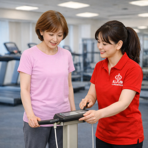 まずは部位別の筋肉量や体脂肪率、筋バランスや水分量などの体組成を測定し、現在の状況を数値で把握します。